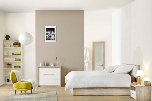 N'hésitez pas à combiner les teintes : la couleur dominante est appliquée sur 80% de la pièce, 15% pour la deuxième couleur. Quant aux 5% restants, il s'agit principalement de meubles et de literie.